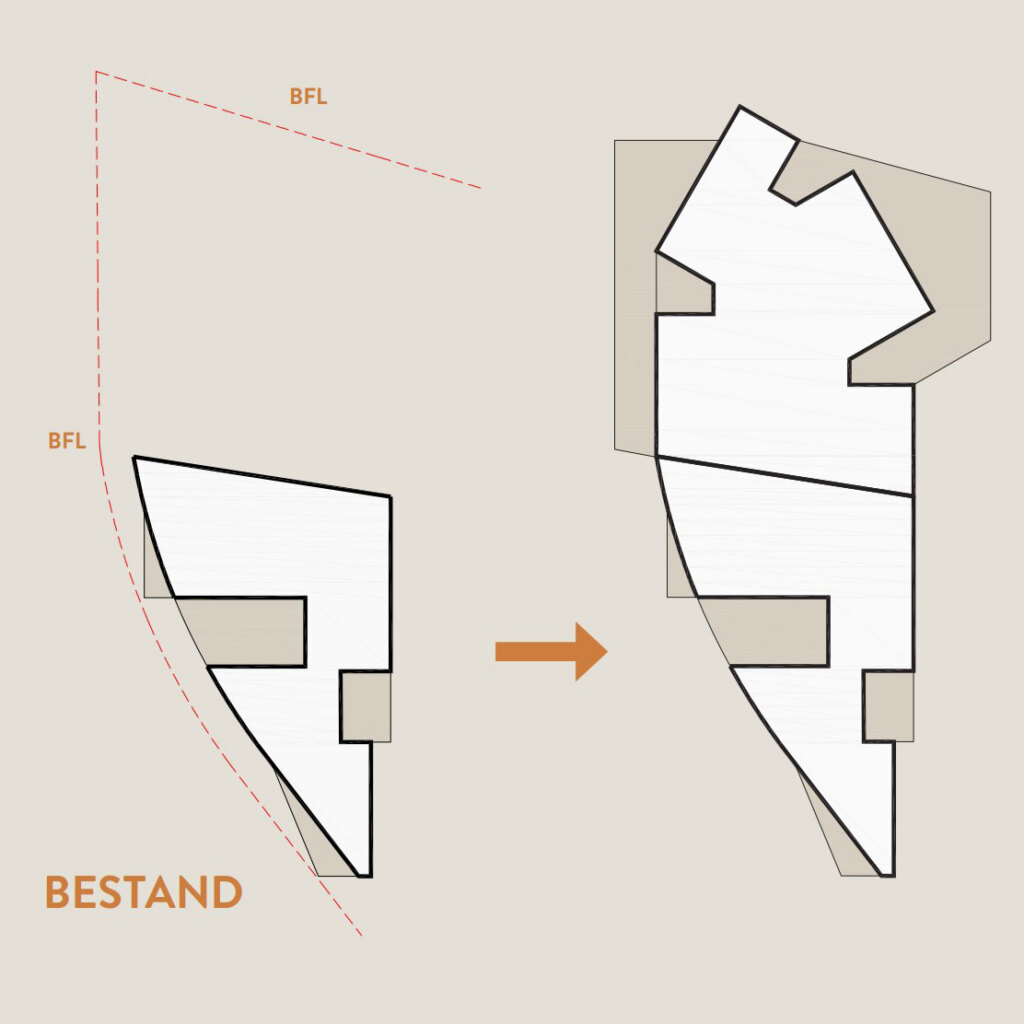 DER ZUbau wird als Holz-Hybrid Bauweise mit dunkler Holzfassade realisiert.